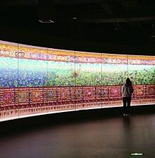 唐卡藏語意為“卷軸畫”,常見的唐卡作品長寬都在1米左右,這幅長618米的巨幅唐卡尺寸之大,實屬罕見。整幅作品由金銀、珊瑚、瑪瑙、珍珠、綠松石等純天然礦物配制的顏料繪制而成,上下裝飾的堆繡圖案達(dá)3000多種。藏文化博物院用四層整層對其進行了完整展示,蜿蜒曲折的展線讓人仿佛徜徉于歷史長河。