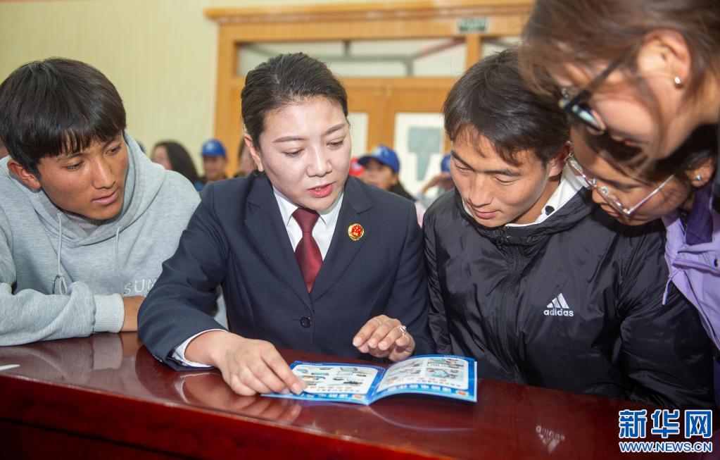 “遵紀(jì)守法 從我做起”專(zhuān)項(xiàng)法律宣講活動(dòng)現(xiàn)場(chǎng)。(新華社記者 旦增尼瑪曲珠 攝)