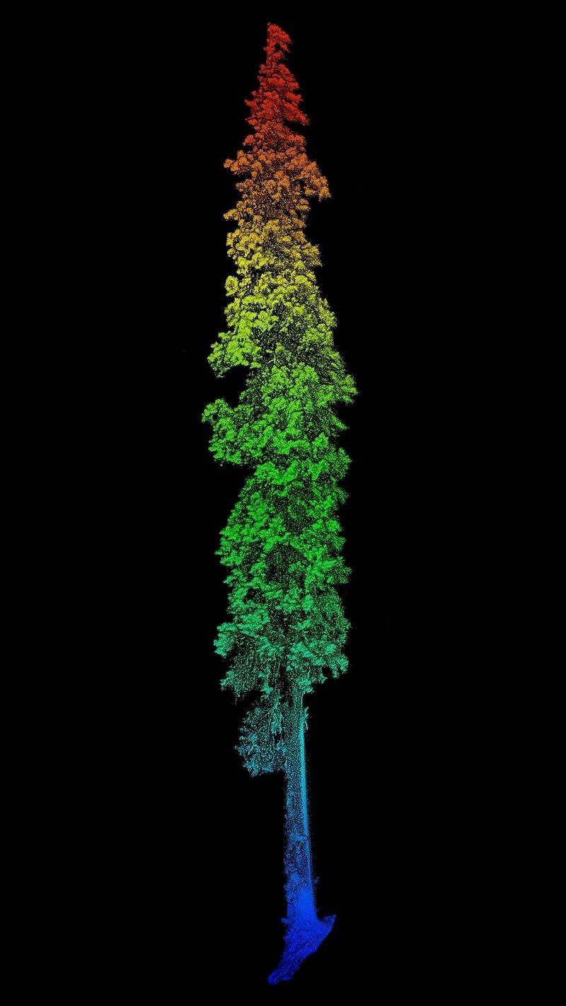 通過無人機(jī)與背包激光雷達(dá)相結(jié)合,對西藏柏木巨樹聚生區(qū)域進(jìn)行精準(zhǔn)測量,得到了巨樹群的精準(zhǔn)三維點云模型。經(jīng)過高度測量,發(fā)現(xiàn)其中一棵西藏柏木高達(dá)102.3米,該發(fā)現(xiàn)同時刷新了中國與亞洲的最高樹紀(jì)錄,躋身按樹種排名的世界最高樹列表,位列第二。研究團(tuán)隊獲取了該樹的精細(xì)三維點云數(shù)據(jù),測量其胸徑為293厘米,并采用無人機(jī)攝影的方式獲取了巨樹等身照。