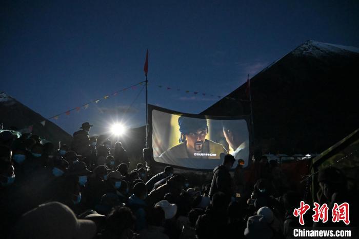 晚上9時許,山谷沉入暮色,吃過晚飯,電影放映員見參開啟設(shè)備放映了藏語版《湄公河行動》。前來觀看電影的村民席地而坐,不似都市電影院,在這沒有影院標(biāo)配座椅、爆米花,卻有著星空下的超級觀感體驗。