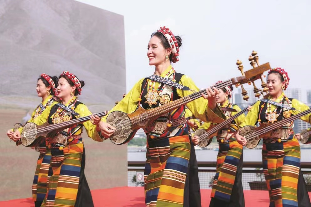 5日,由上海市援藏干部人才聯(lián)絡(luò)組拉孜小組、西藏日喀則市拉孜縣文化和旅游局主辦的“遇見|雅江情濱江意·滬藏文化交流”演出,走進(jìn)上海楊浦文化新地標(biāo)“YOUNG劇場(chǎng)”,悠揚(yáng)的扎念琴聲、時(shí)快時(shí)慢的“踢踏”舞聲、傳統(tǒng)藏族曲調(diào)和現(xiàn)場(chǎng)觀眾的歡笑聲、鼓掌聲,為初夏的繽紛申城再添一抹亮色。