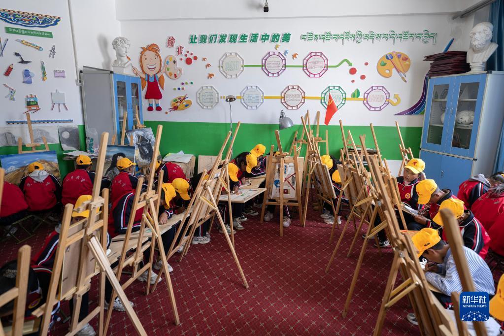 6月5日,扎西宗鄉(xiāng)完全小學(xué)的學(xué)生在上美術(shù)課。新華社記者 費(fèi)茂華 攝