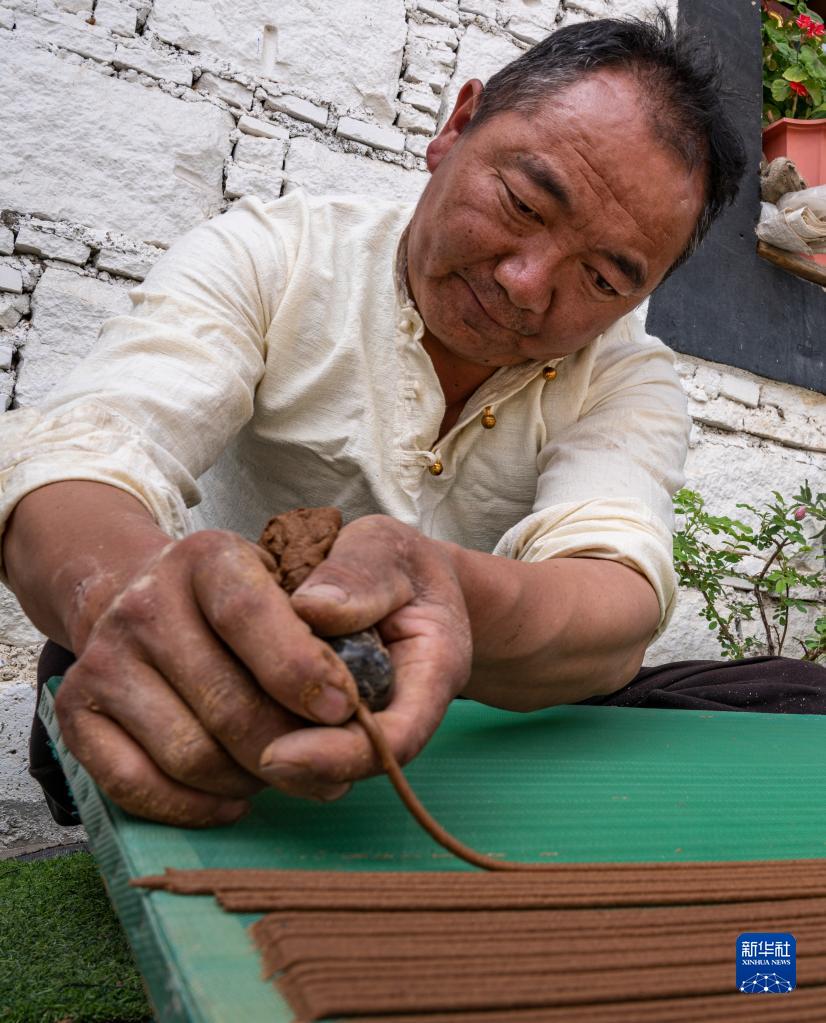 在藏香發(fā)源地——西藏尼木縣吞巴鎮(zhèn)吞達(dá)村,氤氳了1300多年的香氣依然沁脾。這里有近一半的村民從事藏香制作。今年45歲的次仁多吉就是其中之一。