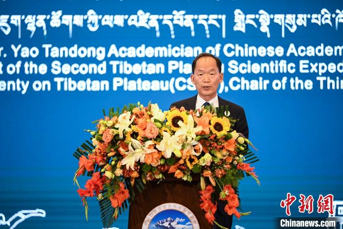 6月17日,中國(guó)科學(xué)院院士、中國(guó)科學(xué)院青藏高原研究所研究員、博士生導(dǎo)師姚檀棟在第五屆中國(guó)西藏旅游文化國(guó)際博覽會(huì)主旨論壇上對(duì)第二次青藏科考的最新成果進(jìn)行了演講分享。他表示,考察實(shí)證漢藏同源,并將青藏高原人類活動(dòng)歷史推至20萬(wàn)年前。 中新社記者 貢嘎來(lái)松 攝