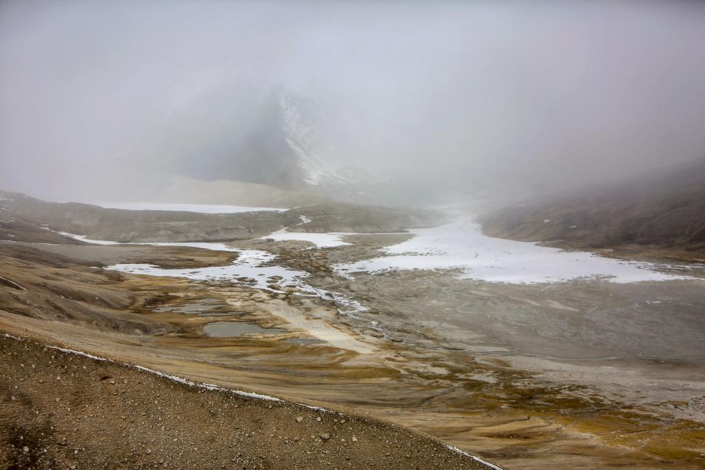 如果說札達土林和古格王國遺址給人的印象可以用宏偉壯觀來形容的話,那么雅魯藏布江發(fā)源地——杰瑪央宗冰川給人帶來的則是蕭瑟與遼闊的景象。我們趕到杰瑪央宗冰川的時候風(fēng)雪交加。凜冽的寒風(fēng)呼呼地刮在臉上像刀割一樣,風(fēng)吹得人幾乎睜不開眼睛。作為本次報道的視頻記者之一,我當(dāng)時最擔(dān)心的是機器拿不穩(wěn),拍攝畫面出現(xiàn)抖動的情況,所以拍攝全程我都把手中的相機攥得很緊。