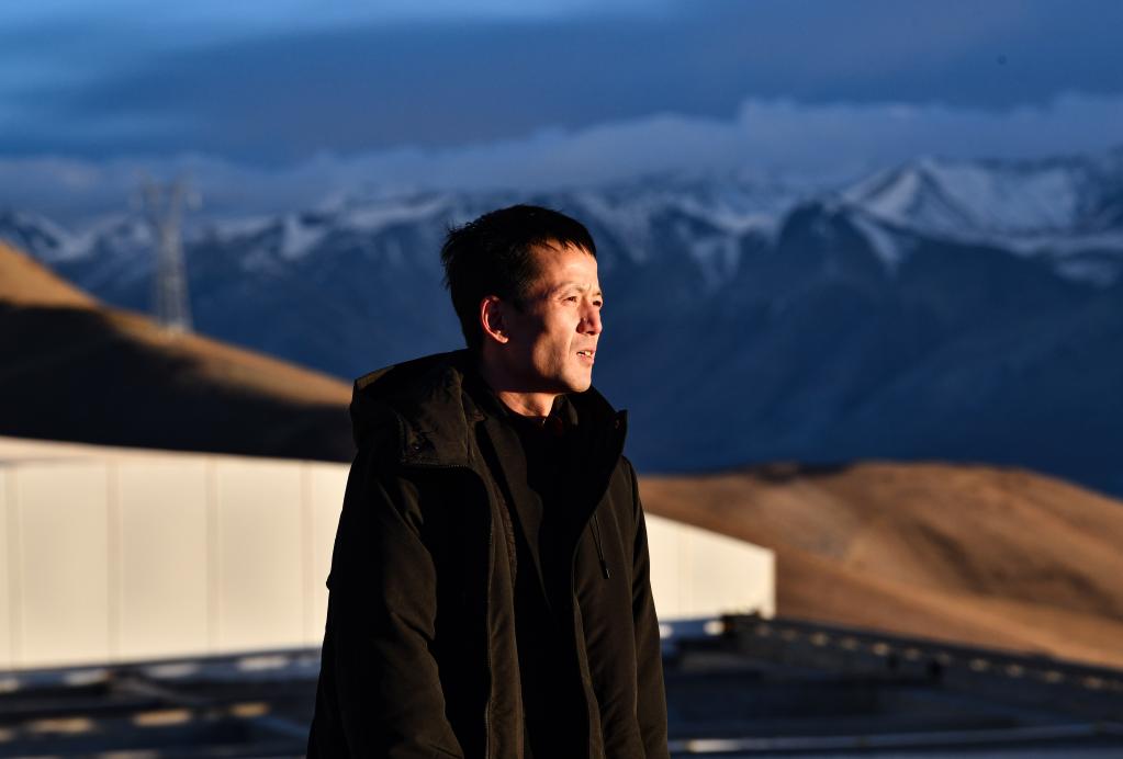 尤顯龍在阿里天文臺凝望遠方(5月24日攝)。