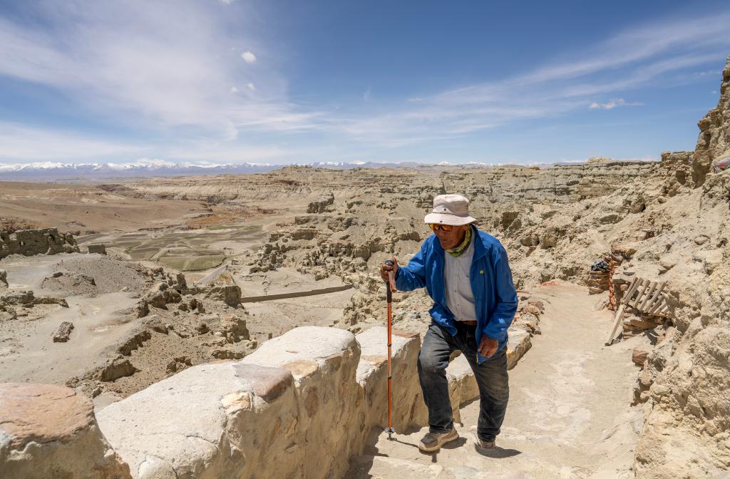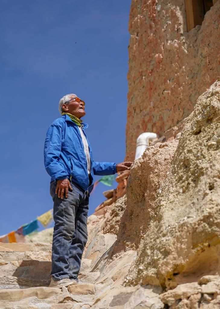 皮央和東嘎石窟遺址位于西藏自治區(qū)阿里地區(qū)札達縣境內(nèi)的皮央村、東嘎村,由皮央石窟群和東嘎扎西曲林寺遺址組成。由于兩村距離很近,遺址規(guī)模巨大,故命名為皮央和東嘎石窟遺址。仁增旺扎是一位75歲的老人,他從2002年開始被聘為當(dāng)?shù)氐奈奈锉Wo管理員,從那時起就一直守護著皮央和東嘎石窟遺址,至今已經(jīng)有20多年。