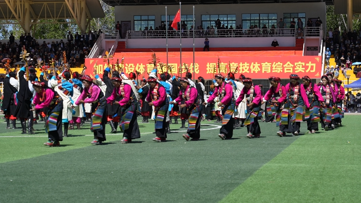6月25日上午,主題為“相約珠峰·千人弦音”日喀則大型非遺歌舞展演在西藏自治區(qū)日喀則市上海體育場(chǎng)震撼上演。現(xiàn)場(chǎng)共1000名參與者同時(shí)表演日喀則非遺民俗舞蹈。