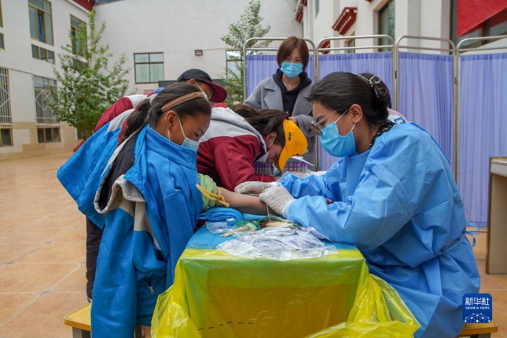 7月4日,“心佑工程”項(xiàng)目團(tuán)隊(duì)醫(yī)生給患兒抽血檢查。新華社記者 邵澤東 攝