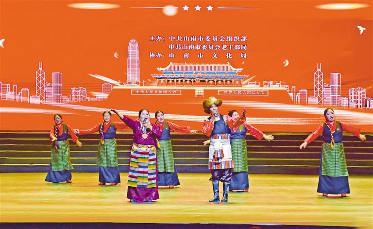 時值“七一”建黨節(jié),山南市委組織部、市委老干部局、市文化局組織全市部分離退休人員,舉辦了一場以“我為‘四個創(chuàng)建’作貢獻”為主題的慶“七一”文藝匯演活動。精神矍鑠的老黨員們用滿腔的熱情、嘹亮的歌聲、歡快的舞蹈回顧黨的光輝歷程,歌頌黨的豐功偉績,謳歌新時代幸福新生活。