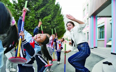 山南市第三小學(xué)的援藏教師甘夭娥帶領(lǐng)學(xué)生練習(xí)藏族傳統(tǒng)舞蹈“打阿嘎”。作為教育大省,湖南通過實(shí)施“山南湖南學(xué)校聯(lián)盟”工程,采取“一所學(xué)校包一個(gè)學(xué)科”的形式,把優(yōu)質(zhì)教育資源下沉到縣區(qū)和鄉(xiāng)村學(xué)校。攝影:辜鵬博(湖南日報(bào)攝影記者)