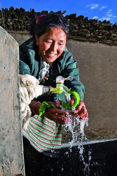 山南市隆子縣隆子鎮(zhèn)葉巴村村民查斯卓瑪用自來水清洗辣椒。攝影:辜鵬博(湖南日報(bào)攝影記者)