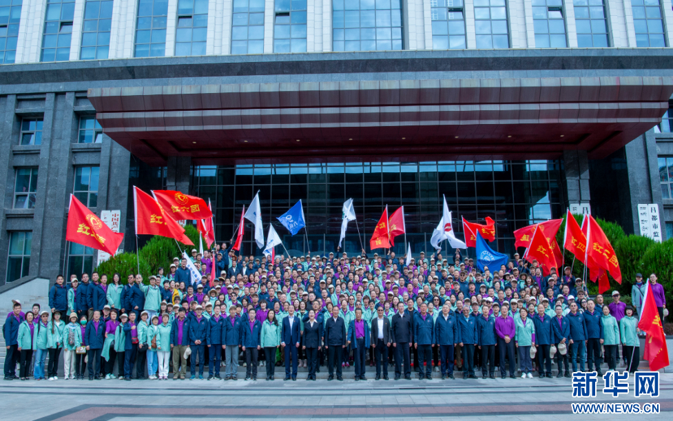 7月8日,來自北京200余家醫(yī)療單位的453位醫(yī)護(hù)人員和100余位愛心志愿者合影。新華網(wǎng) 旦增努布 攝
