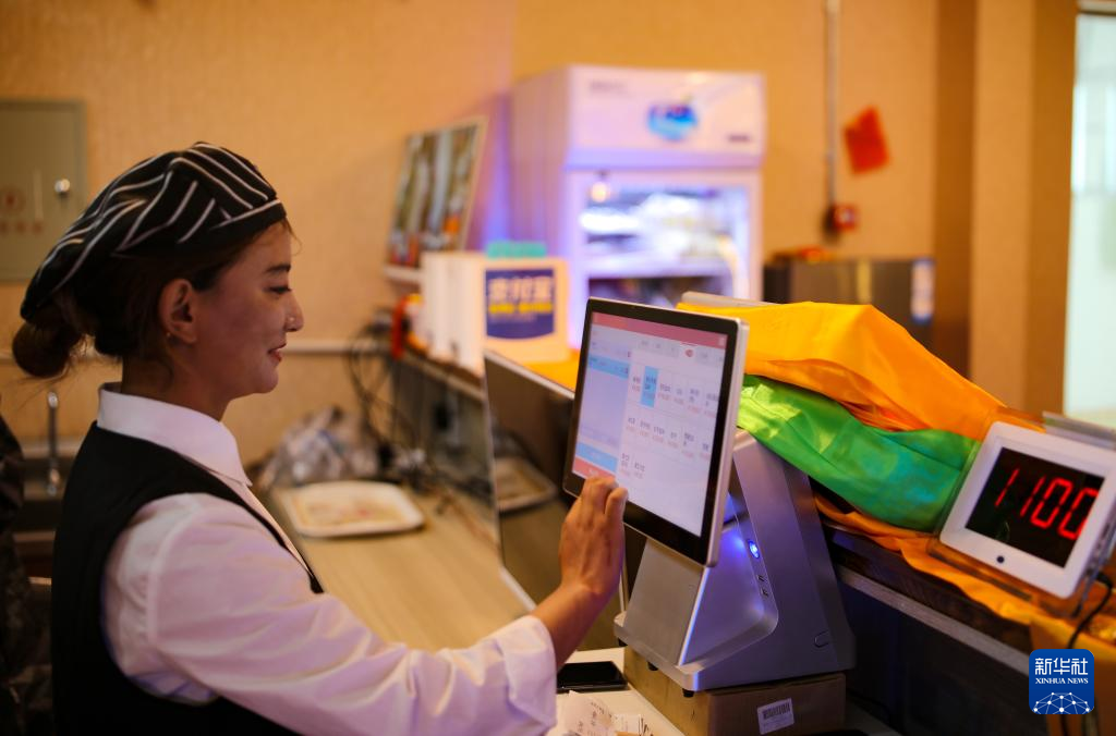 多爾格村村民尼達(dá)卓瑪在合作社開(kāi)辦的茶館前臺(tái)收銀(7月11日攝)。新華社記者 姜帆 攝