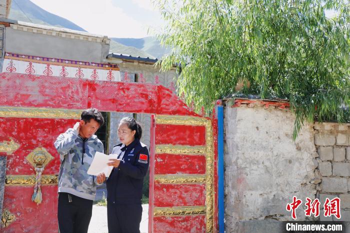 圖為索朗曲珍為鄰居解答戶籍辦理的相關(guān)政策?!?攝