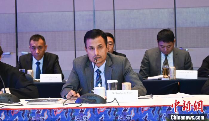 圖為尼方代表團團長、尼泊爾工業(yè)、商業(yè)和供應部聯(lián)秘拉姆贊德拉·迪瓦日致辭。趙朗 攝
