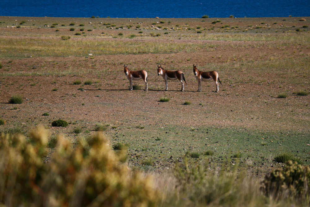 8月13日在西藏阿里地區(qū)普蘭縣拉昂錯拍攝的藏野驢。新華社記者聶毅、曹檳攝影報道
