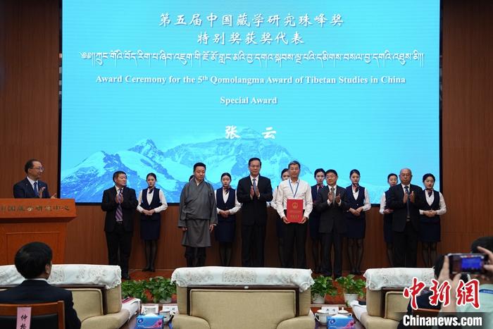 8月14日,第五屆中國(guó)藏學(xué)研究珠峰獎(jiǎng)?lì)C獎(jiǎng)儀式在北京舉行,《元以來(lái)西藏地方與中央政府關(guān)系研究(上下冊(cè))》獲特別獎(jiǎng)。 中新社記者 崔楠 攝