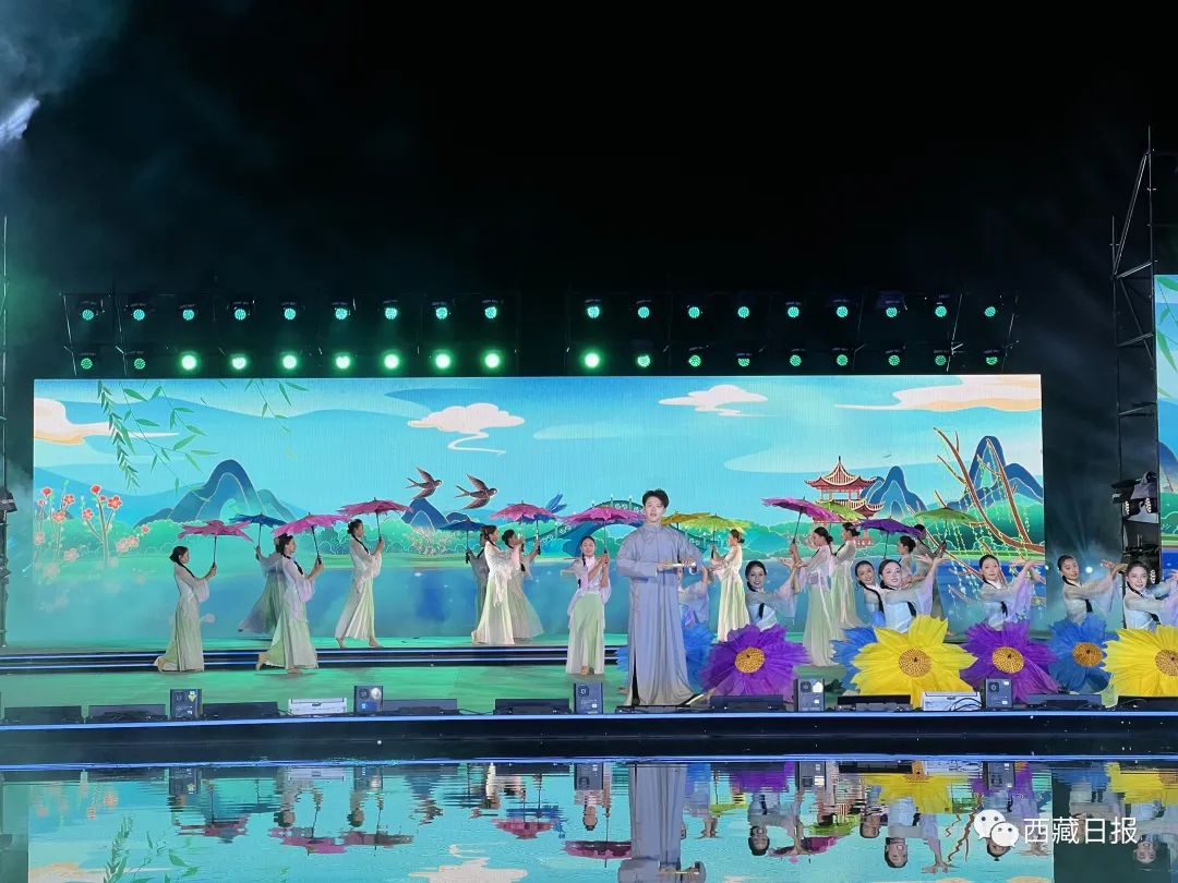 活動(dòng)在文藝演出《雪頓新韻》中拉開序幕,絢麗的燈光、精彩的文藝演出,為觀眾帶來了一場(chǎng)精美的視覺盛宴。開幕式由序篇、上篇、下篇、尾聲四個(gè)章節(jié)組成,整場(chǎng)文藝演出融合歌曲、舞蹈、藏戲、京劇、昆曲、街舞等元素,并以半實(shí)景的舞臺(tái)藝術(shù)形式上演《百年雪頓》等節(jié)目,在線上線下呈現(xiàn)一臺(tái)傳統(tǒng)與現(xiàn)代交相輝映、傳承與創(chuàng)新和諧相融、歷史與未來一脈相承的文藝盛宴。