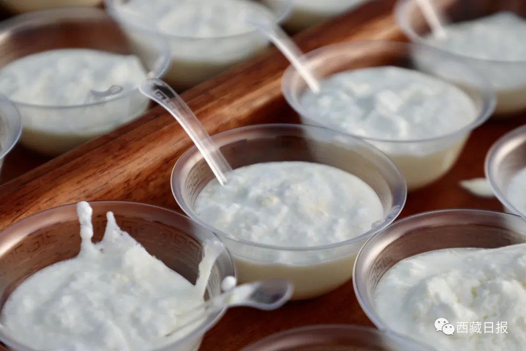 2023年拉薩雪頓節(jié)開幕式分會(huì)場(chǎng)上,為拉薩市民準(zhǔn)備的酸奶。記者 格桑倫珠 攝