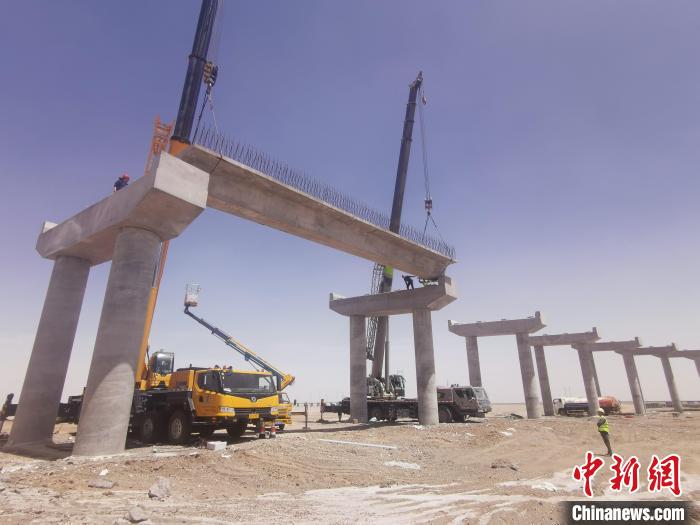 據(jù)介紹,跨青藏鐵路轉(zhuǎn)體橋梁設(shè)計(jì)長(zhǎng)度687米,分主橋和引橋兩部分,引橋共設(shè)計(jì)箱梁116片。預(yù)制箱梁架設(shè)屬于高風(fēng)險(xiǎn)施工,本次架設(shè)的首片箱梁設(shè)計(jì)長(zhǎng)度20米,重量55噸,采用兩臺(tái)大型汽車(chē)吊協(xié)同作業(yè)完成架設(shè)。