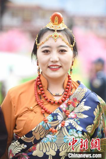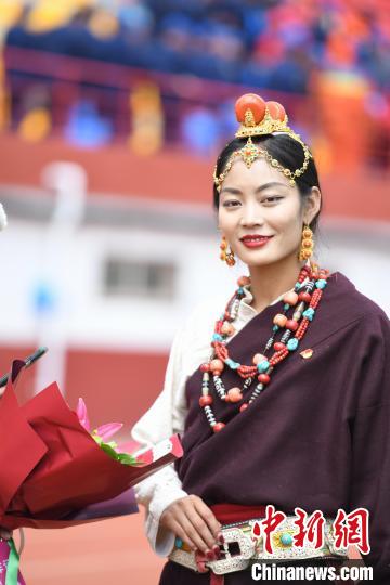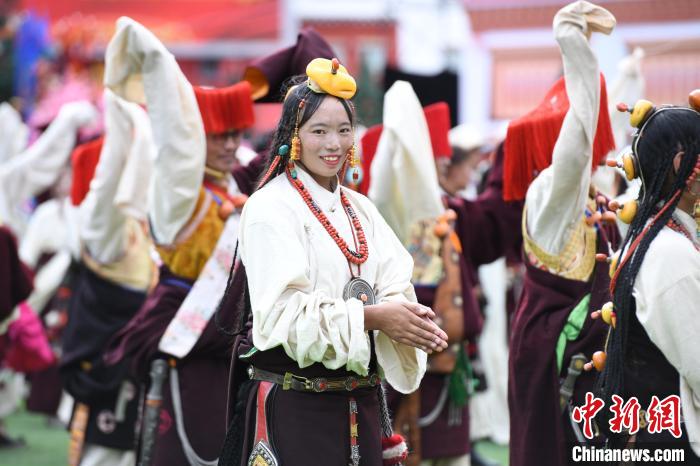 圖為開(kāi)幕式上穿著節(jié)日盛裝的演員。貢嘎來(lái)松 攝