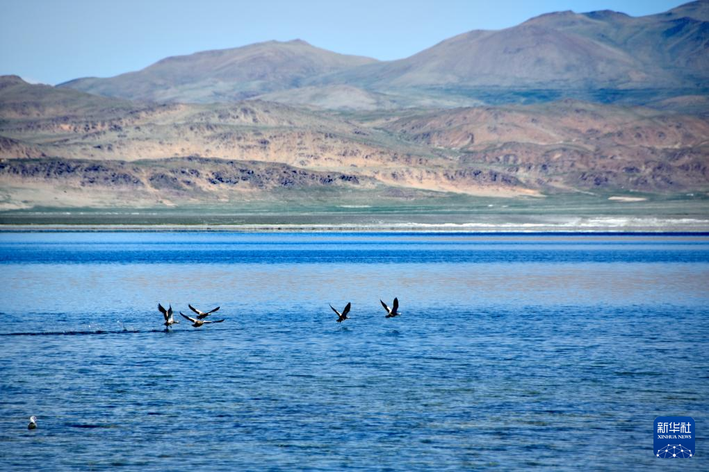 飛鳥從達瓦錯湖面掠過(8月28日攝)。新華社記者 劉文博 攝
