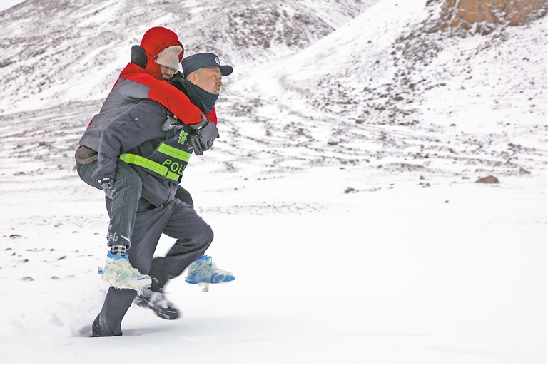 阿里邊境管理支隊塔爾欽邊境派出所民警救援雪中受困群眾。圖片由塔爾欽邊境派出所提供