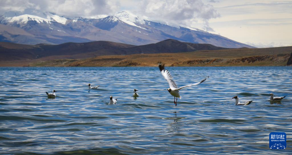 瑪旁雍錯(cuò)水鳥成群(8月13日攝)。新華社記者 聶毅 攝