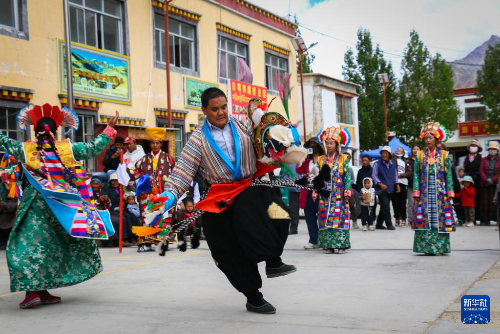 西德村“果爾孜”舞非遺傳承人旦成益西正在表演(8月10日攝)。新華社記者 聶毅 攝