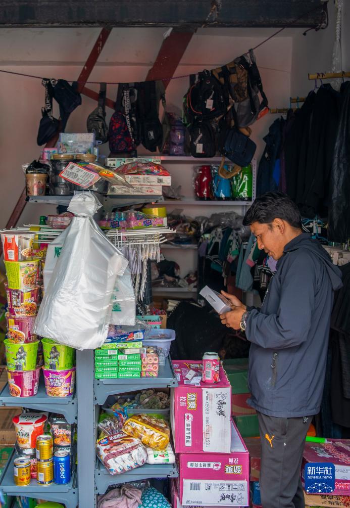 尼泊爾邊民在樟木口岸互市貿易市場選購商品(9月9日攝)。新華社記者 姜帆 攝