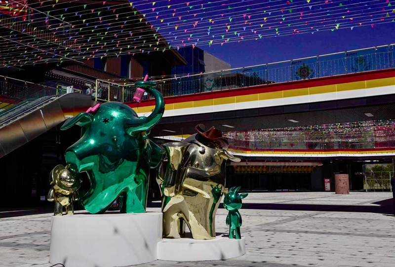 記者日前來到位于柳梧大橋西側(cè)的拉薩印第三代沉浸式主題商業(yè)街區(qū)看到,8棟風(fēng)格古樸又不失現(xiàn)代感、獨立又相互聯(lián)系的商業(yè)建筑群已落成,可愛俏皮、形象各異的街區(qū)創(chuàng)意IP雕塑分布于各顯眼處。星巴克服務(wù)、羅康藏宴、拉薩好物等品牌商家已開始試營業(yè),更多的商家正在入場進行店鋪裝修。