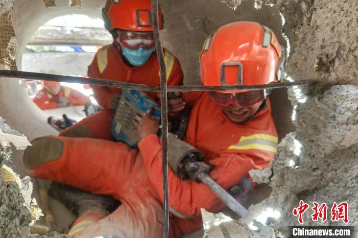 圖為參賽隊員在“狹小空間救援”比賽現(xiàn)場。昌都市森林消防支隊 供圖