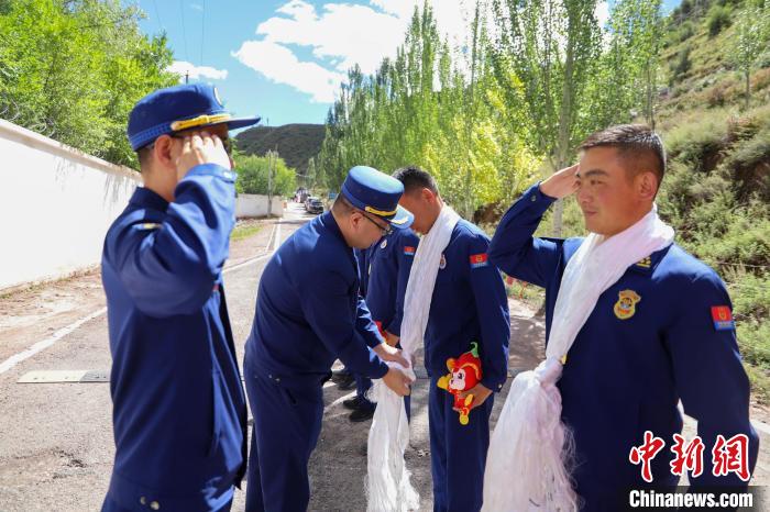 9月23日,參賽隊員載譽歸來,昌都市森林消防支隊熱烈歡迎參加比武指戰(zhàn)員載譽凱旋?!熬炊Y!”支隊指戰(zhàn)員用鮮花、哈達和熱烈的掌聲迎接凱旋歸來的勇士。