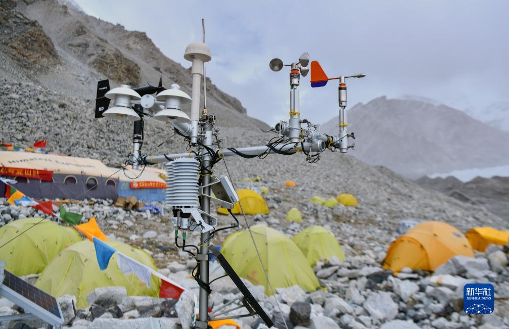 位于海拔5700米卓奧友峰前進營地的自動氣象站(9月29日攝)。新華社記者 晉美多吉 攝