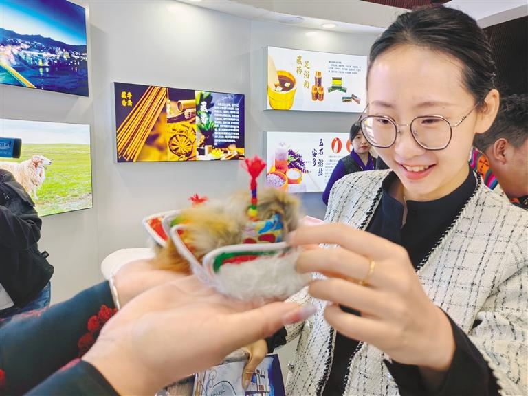 “這次畜產(chǎn)品展銷活動上,我們主要銷售天線帽工藝品、玉石、羊毛圍巾、羊毛毯等,產(chǎn)品價格比較實(shí)惠,前來咨詢購買的人也很多。展銷不到兩個小時,就賣了1000多元?!卑捕嗫h措那湖文化傳播有限責(zé)任公司負(fù)責(zé)人貢布多吉的臉上充滿了喜悅。