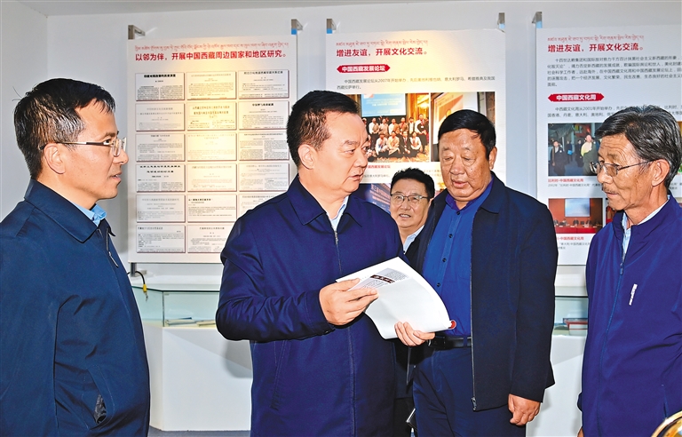 10月7日,西藏自治區(qū)黨委書記王君正前往自治區(qū)社科院、社科聯(lián)調(diào)研。這是王君正在考察全區(qū)哲學(xué)社會科學(xué)組織體系建設(shè)、學(xué)術(shù)研究、人才工作情況。記者 旦增西旦 攝