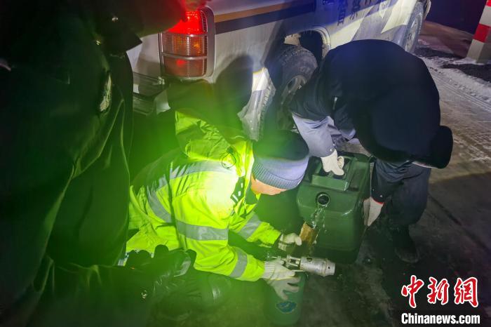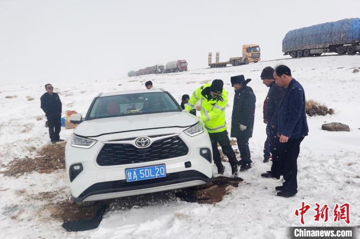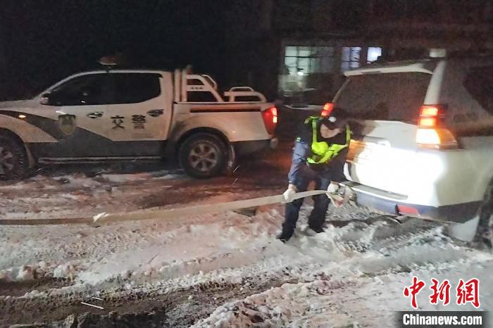 圖為西藏安多警方對(duì)被困車輛施救。安多縣公安局 供圖