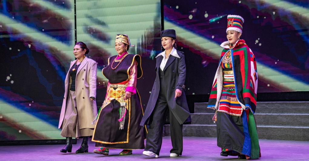 10月23日,“藏秀”模特隊的模特們在走秀。新華社發(fā)(丁增尼達攝)