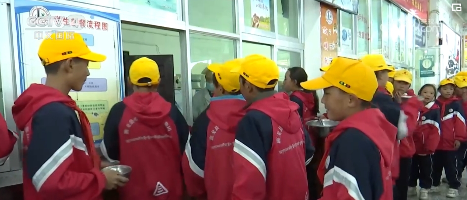 學(xué)校的學(xué)生絕大部分來自牧區(qū),寄宿制能夠保證更好的教學(xué)質(zhì)量,但并不強制。晚上下課后,離學(xué)校近的學(xué)生由家長接走,格桑堅才則和小伙伴去食堂吃晚飯。學(xué)校還配備生活老師,照顧學(xué)生的日常起居、提供日用品。這些費用都由中國從1985年開始,對西藏自治區(qū)實施的教育“三包”政策負(fù)擔(dān)。包吃、包住、包學(xué)習(xí)費用,學(xué)生家庭不用出一分錢。2023年這一政策的補助金額又再次提高,達(dá)到年生均4000—5000元。這所學(xué)校的升學(xué)率能達(dá)到100%。