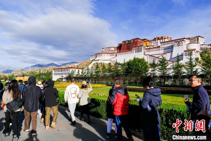 9月30日,游客途經拉薩布達拉宮。中新社記者 江飛波 攝