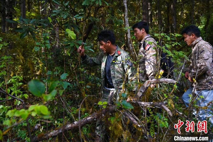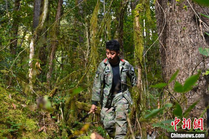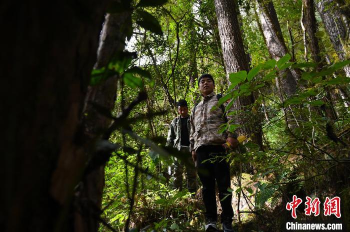 3名管護員到達(dá)格當(dāng)鄉(xiāng)最深處的一片原始森林。正值深秋,對于管護員們來說是最好的季節(jié),雨季結(jié)束,蚊蟲也少。他們僅帶了背包和道具,管護站副站長索朗羅珠說:“今天不用過夜,帶的裝備很簡單?!?/p>