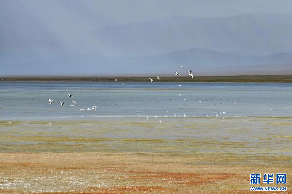 11月17日,在哲古湖拍攝的鳥群(無人機照片)。新華網(wǎng) 旦增努布 攝