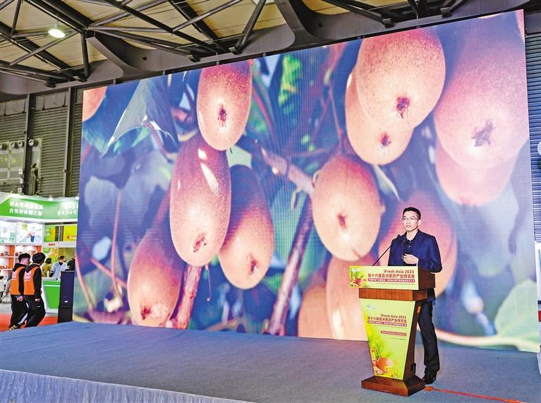 察隅獼猴桃獲得第十六屆iFresh亞洲果蔬產(chǎn)業(yè)博覽會(huì)“2023年度受市場(chǎng)歡迎的果品區(qū)域公用品牌”的榮譽(yù)。 圖片由本報(bào)記者 謝筱純 王珊 攝