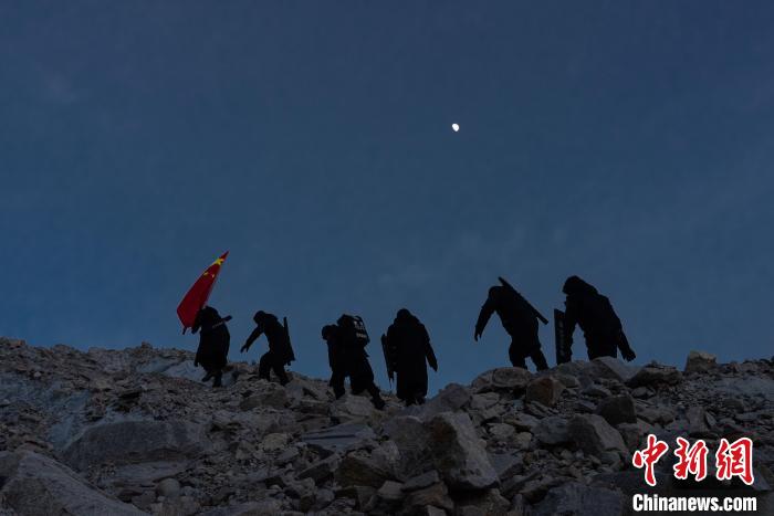 近日,西藏出入境邊防檢查總站普瑪江塘邊境派出所對轄區(qū)海拔5600米的崗布冰川(中不邊境)開展第332次巡邏。