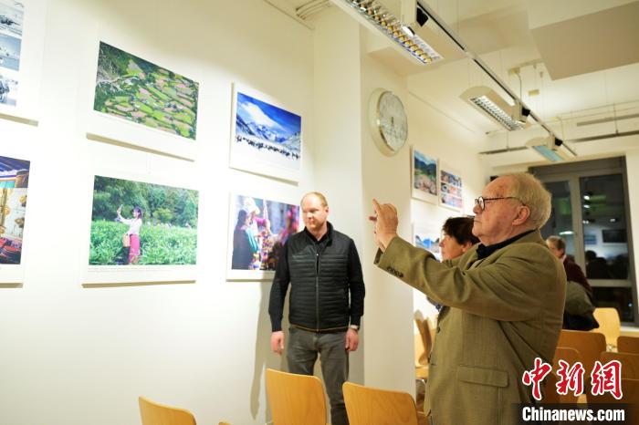 維也納商會(huì)市場(chǎng)部主席馬庫斯·漢茨(Markus Hanzl)參觀“和美西藏”攝影展。歐洲時(shí)報(bào)記者 周修怡 攝