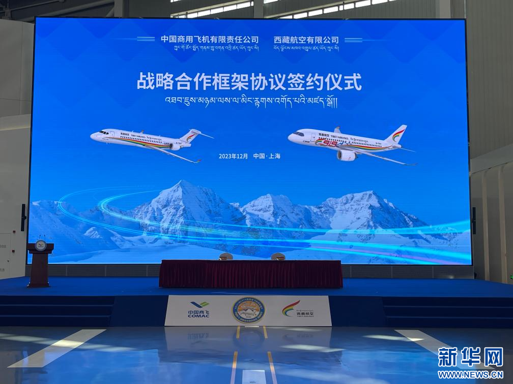 西藏航空與中國商飛簽署戰(zhàn)略合作框架協(xié)議現(xiàn)場。(西藏航空供圖)