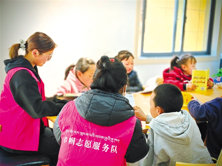 冬日的暖陽照在察隅縣竹瓦根鎮(zhèn)扎拉村農(nóng)家書屋的房頂,暖意融融。在幾名新時代文明實踐志愿服務(wù)隊成員的輔導(dǎo)下,孩子們有的玩游戲、有的做手工、有的寫作業(yè)、有的閱讀書籍。