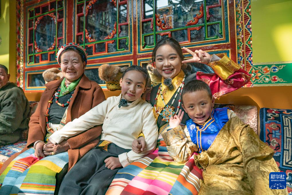 后來我們又去莫拉家拍攝了團(tuán)圓飯、換新藏裝等場景。拍攝時(shí),我需要穿藏裝和巴桑莫拉的女兒進(jìn)行互動(dòng),而當(dāng)天日喀則的氣溫已經(jīng)到了零下,她發(fā)現(xiàn)我的雙手冰涼后,全程都用自己的手捂著我的手,想讓我暖和一點(diǎn)。拍攝結(jié)束以后,小朋友們也圍在我身邊抱著我,想用自己的方式給我傳遞一點(diǎn)溫暖。