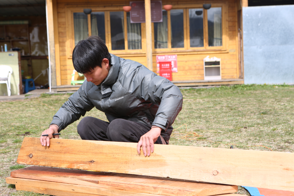 每個煙雨朦朧的清晨,都是夫妻倆最忙碌的時候。白瑪?shù)录?fù)責(zé)民宿房間內(nèi)的保潔工作,丈夫殷合做一些手工活,制作民宿的木桌木椅等用具。夫妻倆就這么一天天地過著,忙得不亦樂乎。